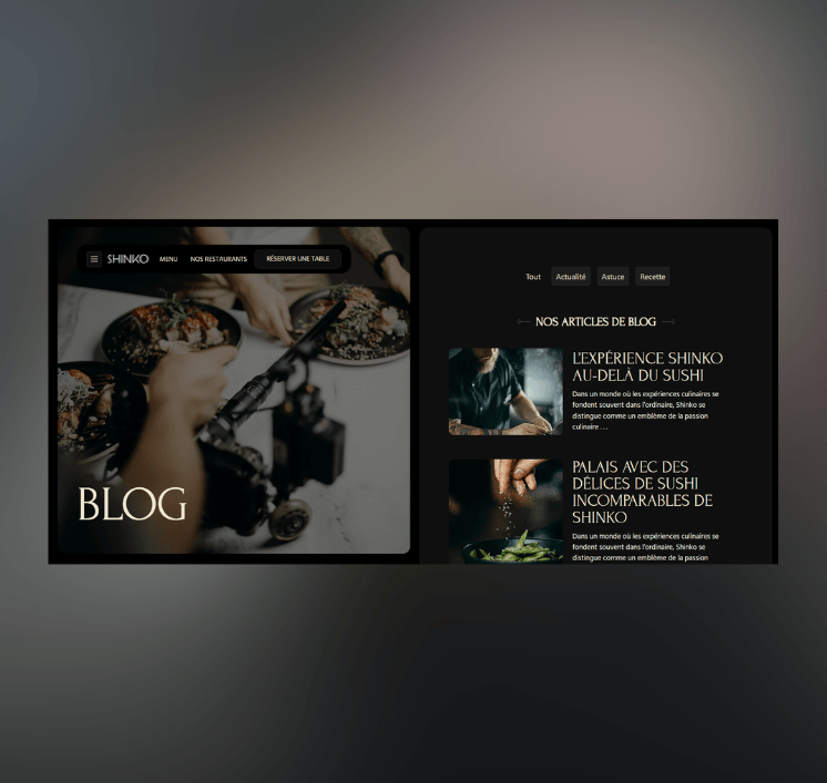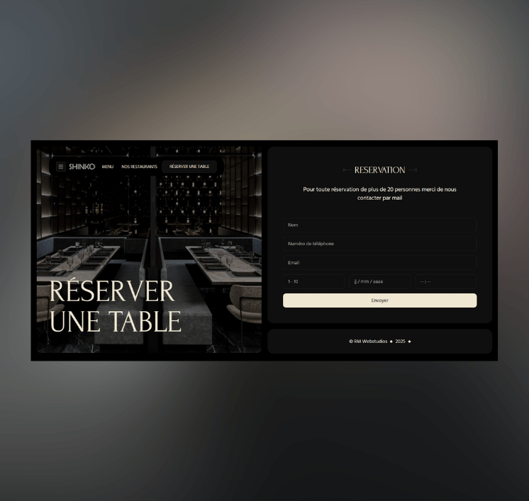 Shinko est un Template RM Webstudios compatible avec WordPress, pensé pour les restaurants qui veulent refléter en ligne la même élégance et précision que dans leurs assiettes. Inspiré du concept “bento” du restaurant parisien Shinko (une expérience à volonté sur tablette avec service à table) ce template se distingue par son design immersif, sombre et raffiné, digne des plus belles tables.