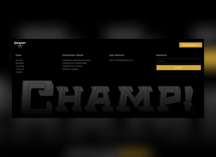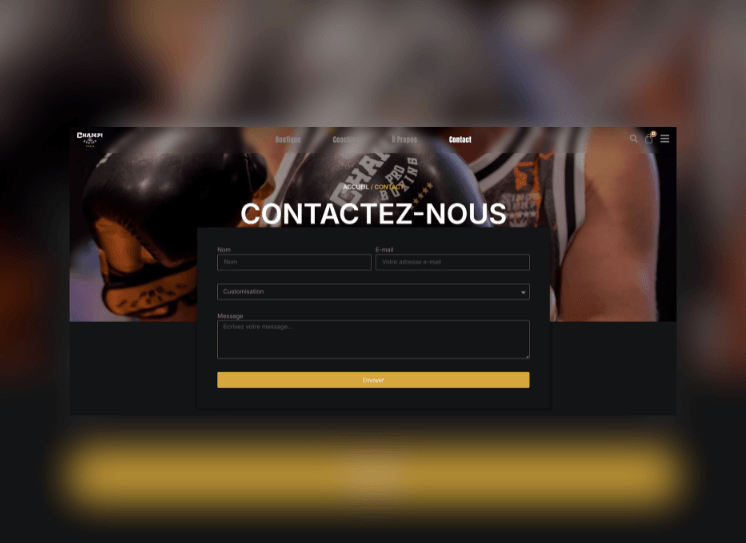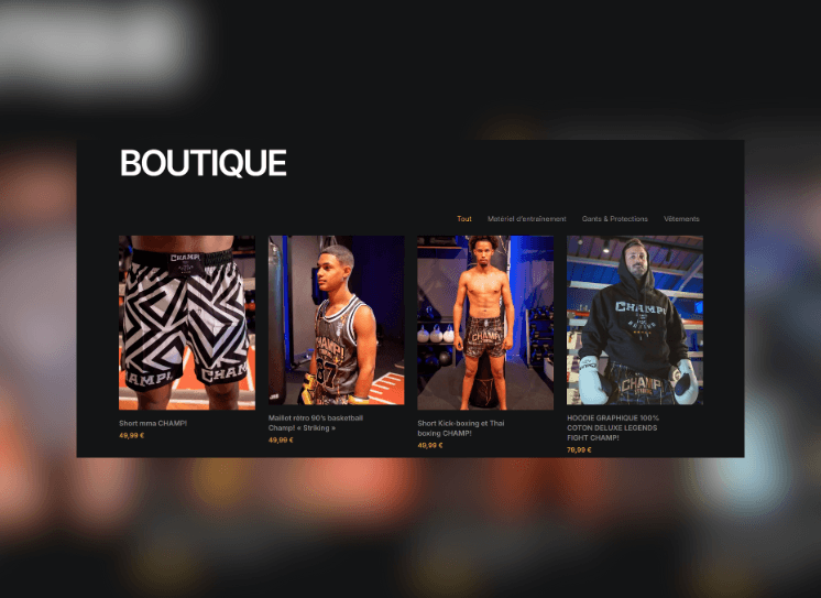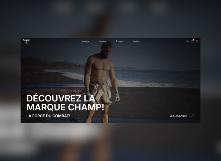 Cette réalisation repose sur un template RM Webstudios retravaillée pour Champ! Inc, une marque d’équipements de boxe, accessoires et vêtements inspirés du monde de la boxe.