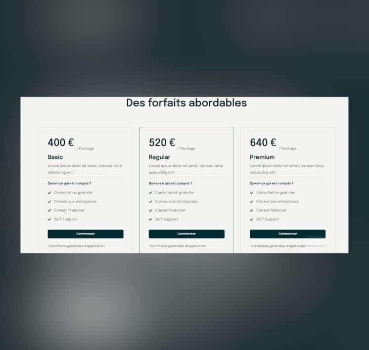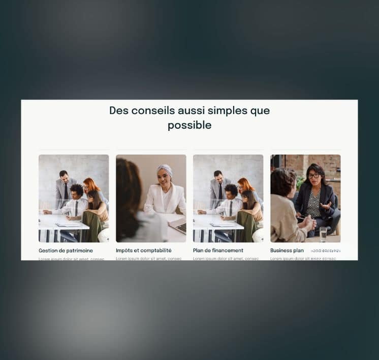 Quantis propose une interface sérieuse mais dynamique : Une page d’accueil impactante, avec slogan, CTA immédiat, et mise en avant des services. Des pages services dédiées pour présenter les offres de manière détaillée. Une section portfolio / réalisations pour mettre en avant les projets clients ou les cas d’usage. Un espace équipe, témoignages clients, avis , et réseaux sociaux pour humaniser et crédibiliser l’activité.